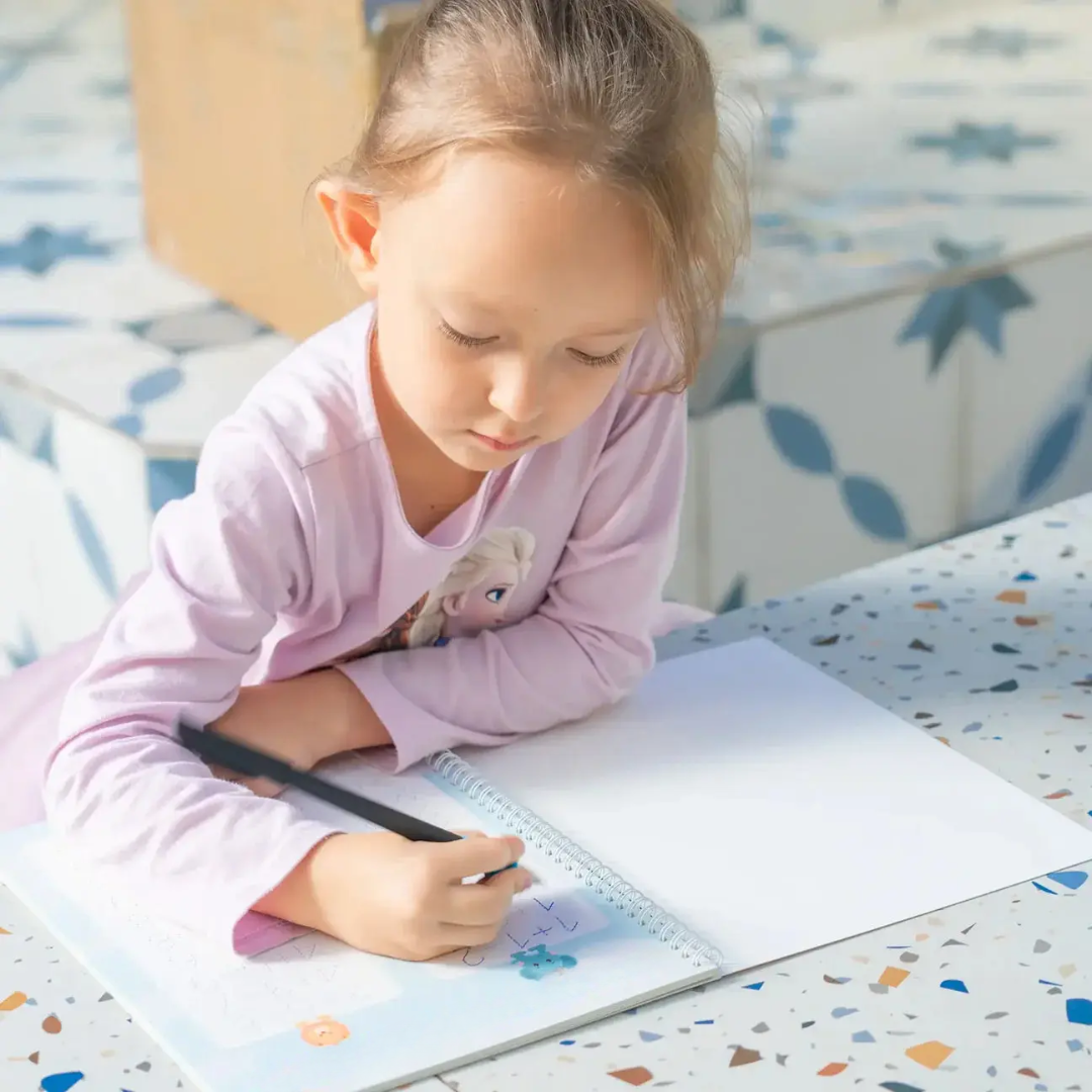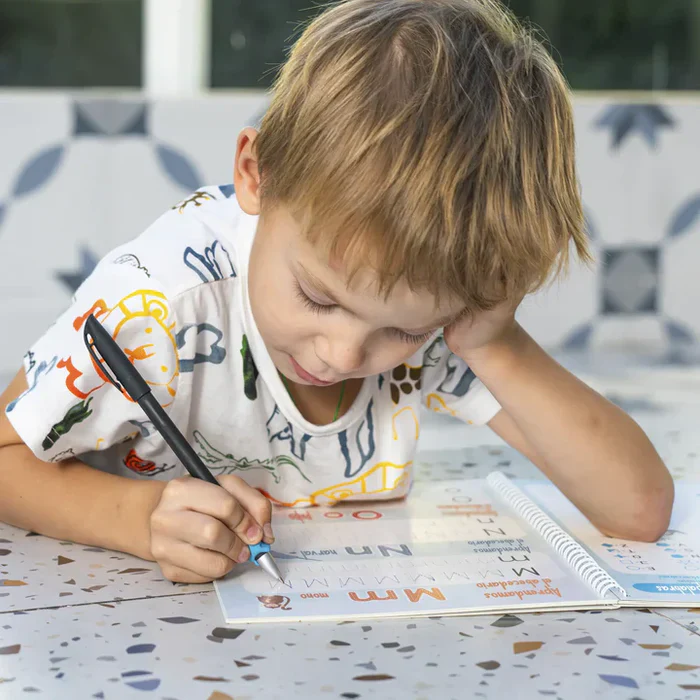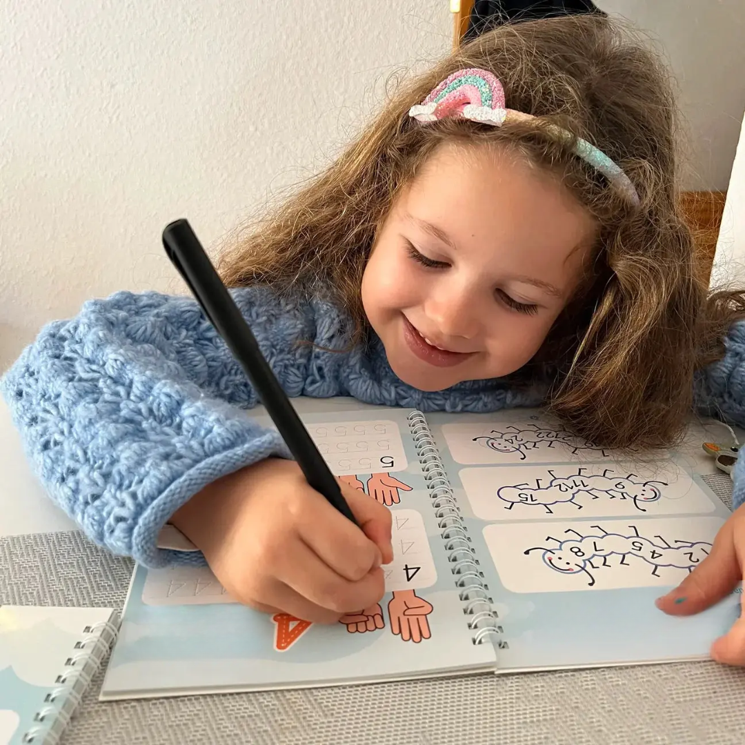 Blækket forsvinder af sig selv efter ca. 10 minutter, hvilket gør, at barnet kan øve på den samme side flere gange.